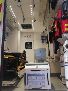 Après plusieurs échanges, le gérant a opté pour l’appareil de désinfection Mobiwatch Minibio. Robuste, simple et facile à transporter, ce dispositif fonctionne par diffusion de brouillard sec, une technologie sans résidu, parfaitement adaptée aux espaces confinés comme les ambulances.